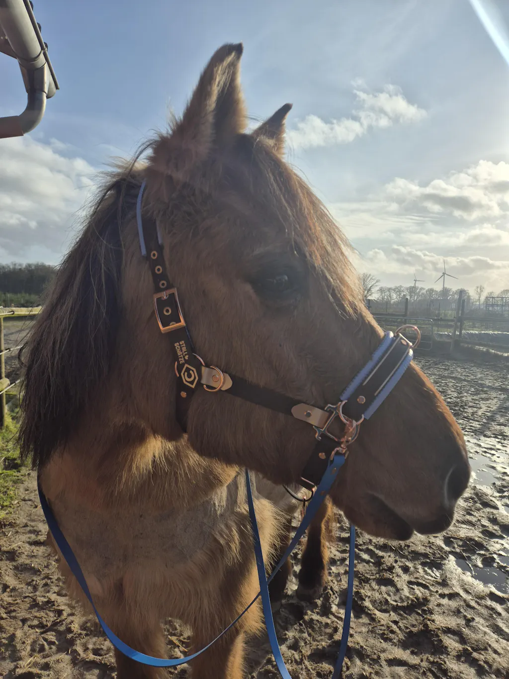 Bitte beachte: Pferde nicht ohne Sollbruchstelle (z.B. SafetySchlaufe) anbinden. Nicht geeignet als Weidehalfter oder zum Transport.